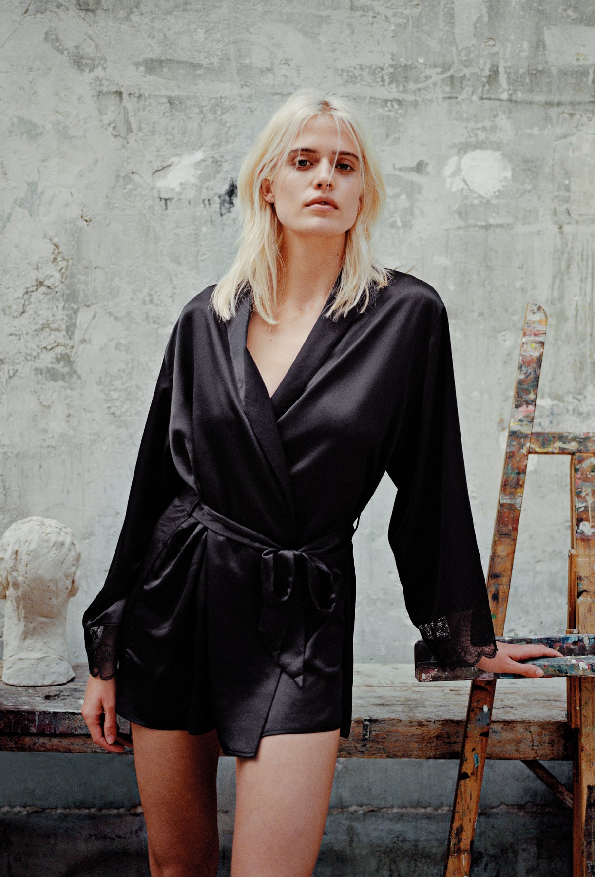 Midnight Flowers Kimono by Chantelle is a refined expression of modern elegance, crafted from recycled satin with delicate lace appliqués. Designed to drape beautifully over the body, this kimono offers a luxurious feel while embracing a more responsible approach to fashion.